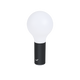 Technology : integrated LED - Luminous flux battery :200lm / mains :300lm Switch type :touch-activated dimmer Function of the switch : change the brightness (10 to 100%, click 4 s), change the light temperature (double short click), ON/OFF (short click, 1s) Lighting mood :Position 1 cool white (4000°K) dimmer switch (10 to 100%) - Position 2 warm white (2700°K) dimmer switch (10 to 100%) Type of power supply :battery - Battery life : Min. (100%) 7 h Battery use cycles :300 cycles Recharge time : 7 h