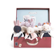Mademoiselle Blanche from the “Parisiennes” collection is thrilled to invite us to see her wardrobe! A suitcase wardrobe for the plush doll with a built-in mirror, wooden rail, patterned hangers and three elegant outfits tucked in a drawer. Whether for a night out in Paris or a pyjama party, all you need to do is choose the perfect outfit!